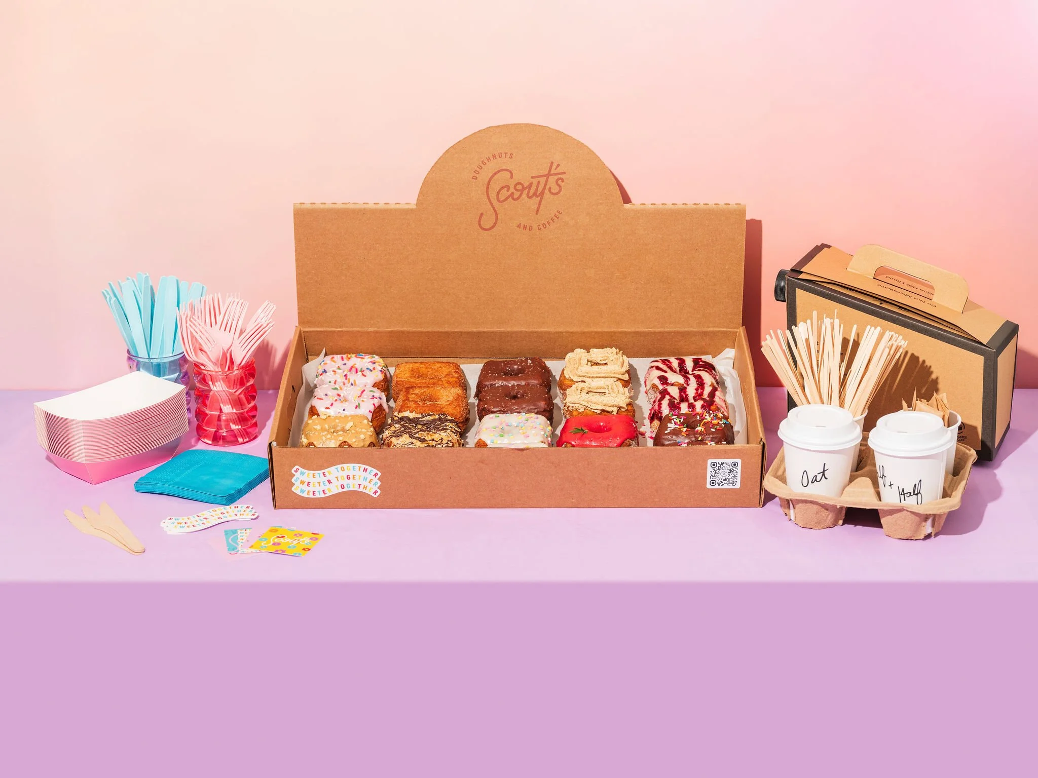 We offer both pickup and local delivery of catering orders during our regular business hours. If you would like to inquire about a large order outside of our normal business hours or have general questions please contact us at catering@scoutsdoughnuts.com!